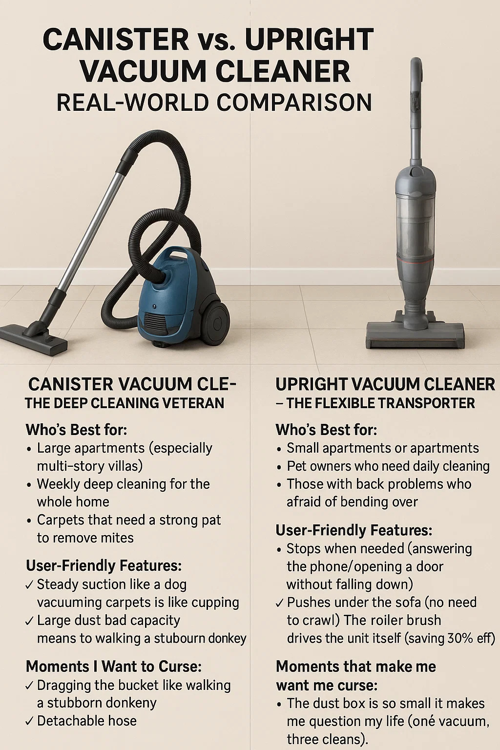 قوطی در مقابل قائم جاروبرقی مقایسه در دنیای واقعی
